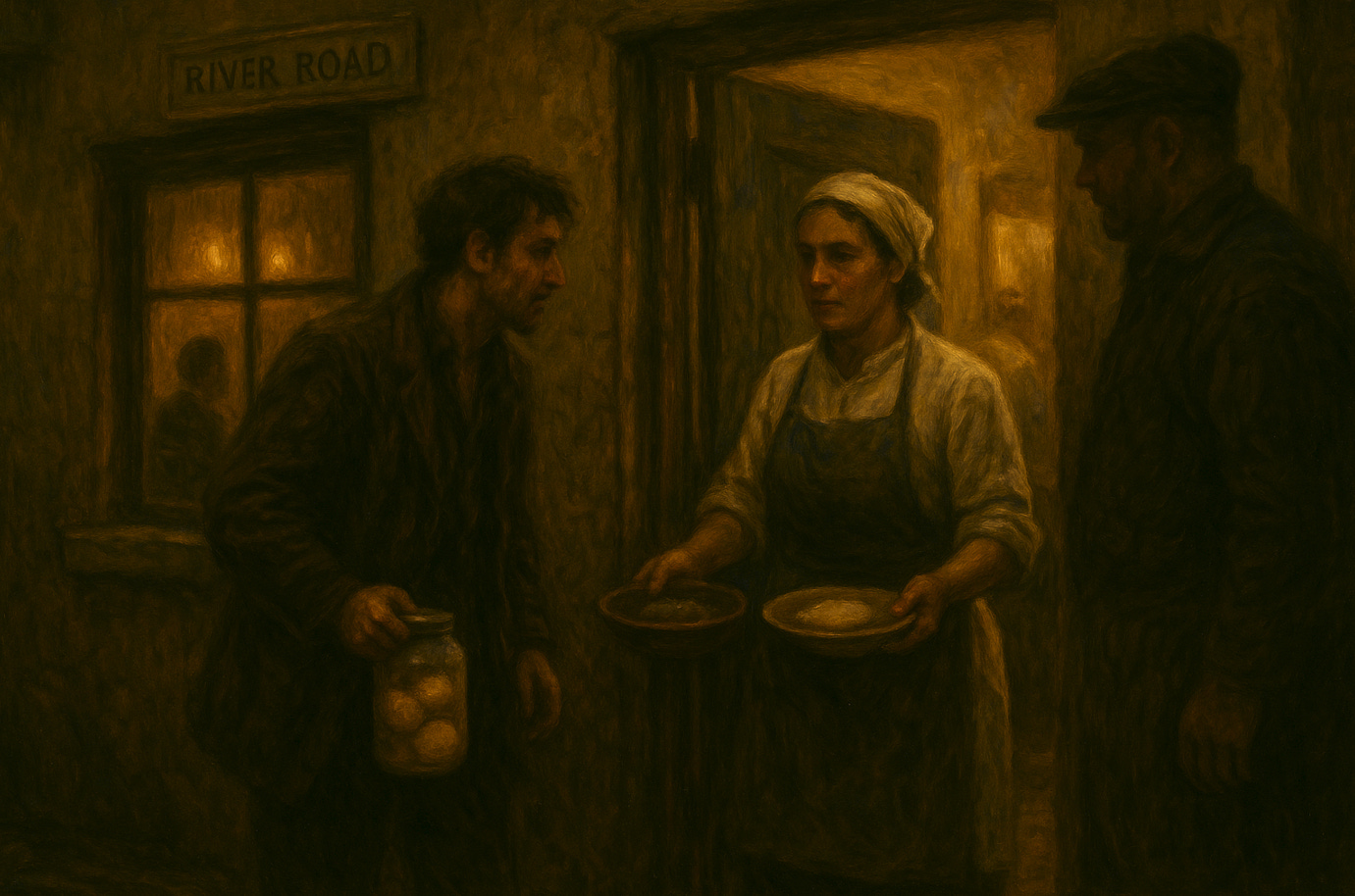 People eat in circles. Children learn the rule that you look at your own plate. The pie is cut by the woman who can cut straight. She makes the pieces equal and pretends not to see who gets the corner. At the end of the night the tray of pastries has crumbs and political value. Ida folds her cloth and goes home with a full stomach and a small hard feeling that she will not name. She paid more than she ate. Everyone did. That is how a street keeps breathing.