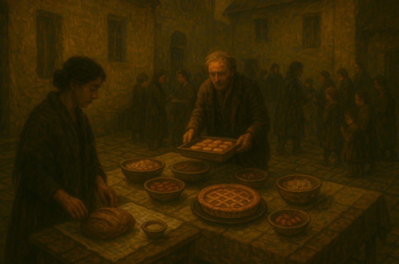 Food is not neutral. A stew can be a wage. A sweet can be a bribe. The same loaf means supper in one street and crumbs in another. If you know who sits, who stands, who serves, who waits, and who pretends not to be hungry, your world will feed the reader what matters without a speech.